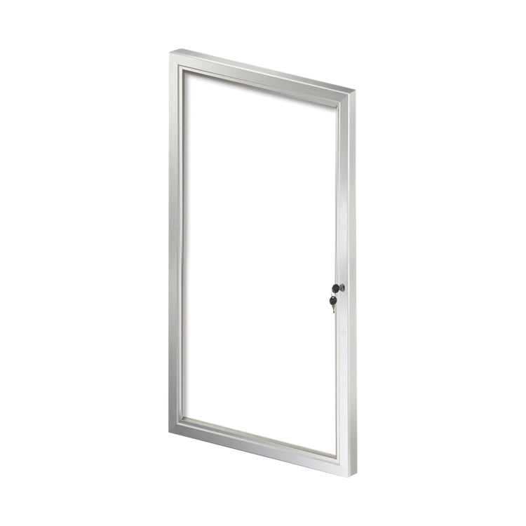 Azar Displays Enclosed Magnetic Message Board With Lock And Key, Porcelain, 23in x 42-5/16in, White, Silver Aluminum Frame