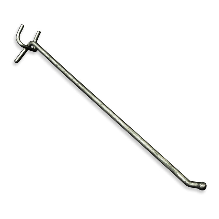 Install these wire hooks from Azar Displays in your pegboard or slatwall system to create an attractive display for products. The 12" hooks are made of galvanized metal for rugged strength.