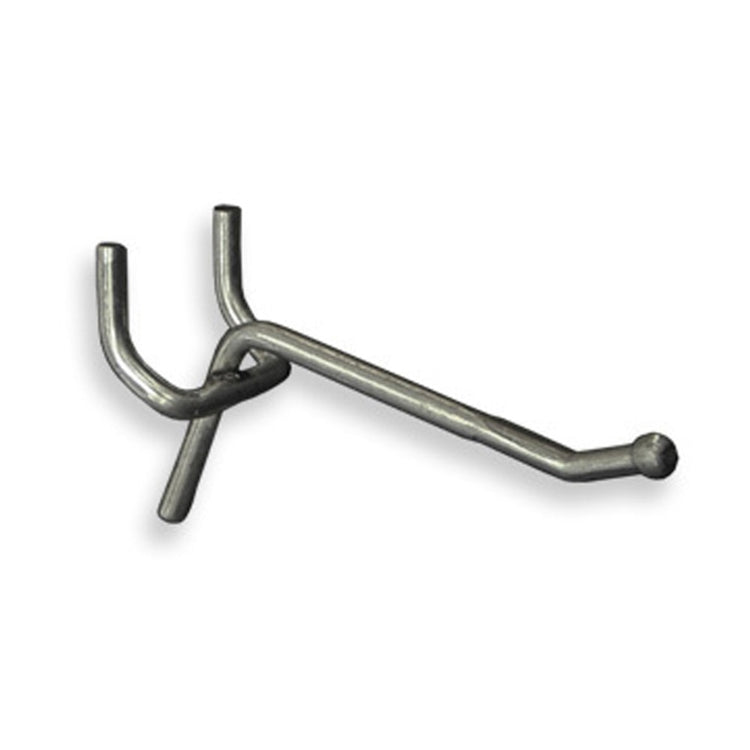 Use these all-wire hooks from Azar Displays to display your products. The galvanized metal hooks fit nicely in pegboard or slatwall systems for simple installation.