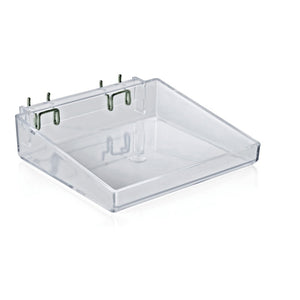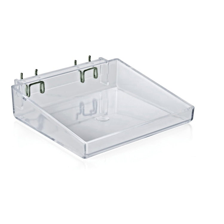 Attach 1 of these trays from Azar Displays to your pegboard or slatwall display to create an eye-catching display for customers. The open design of the tray is suited to accommodate items that need to lie flat or stand upright.