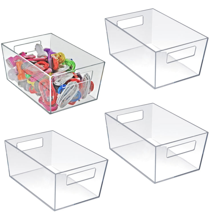 Azar Displays Tote Bins With Handles, Medium, Clear, Pack Of 4 Bins