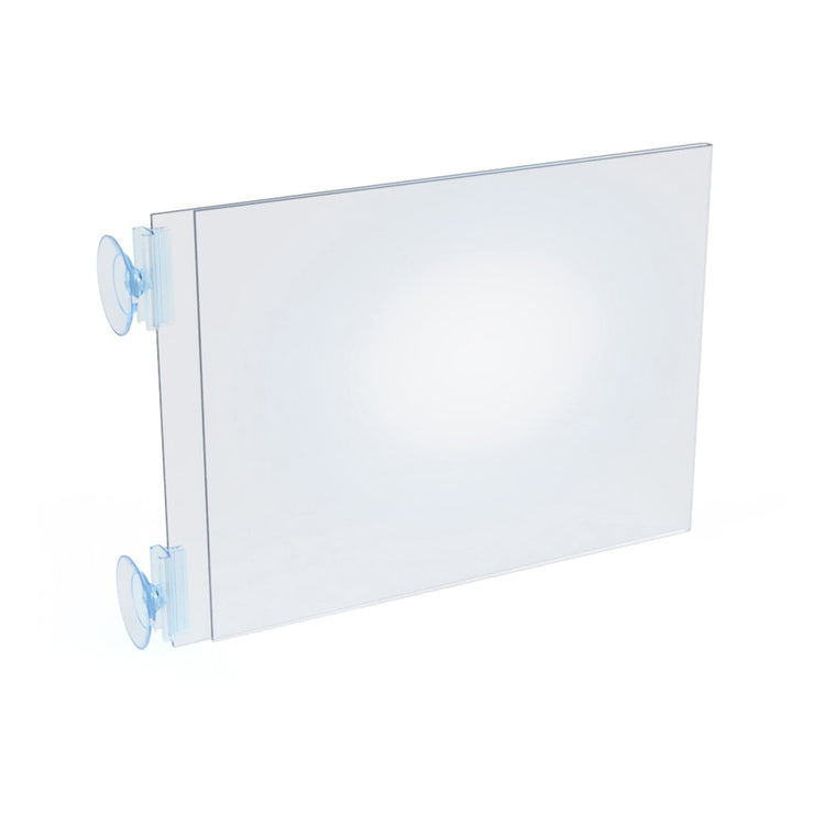 These Clear Acrylic Window Sign Holders with Suction Cups are very popular for retail stores, schools, and businesses. The high quality suction cups ensure long-term holding power. For best results, apply to a clean, non-porous surface. The sign holders with suction cups are double sided and ideal for glass doors and windows. Easily print your graphic or message and insert into the sign holder to keep it protected from the elements. You can use both sides at the same time to post signage that will be visible on either side of the glass window or door. Simply insert your document on the top or side of the sign holder and swap out easily without taking the signs down. Let customers know you are open and display your store hours on your door entrance. Advertise a new promotion or display important information so your customers can see it on the way in and out of your store. Give directive for delivery and curbside pickup that is highly visible to your customers. These glass mount suction cup sign holders comes with suction cups that have been field tested and proven to hold long term when used on non-porous surfaces such as glass. The new suction cup design is sleek and modern and the clear transparent unit will match any décor. Versatile and easy to use.