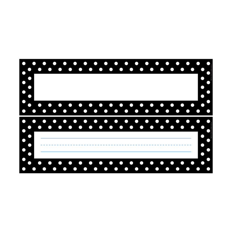 Barker Creek Single-Sided Desk Tags/Bulletin Board Signs, 12in x 3 1/2in, Black-And-White Dots, Pre-K To Grade 6, Pack Of 36