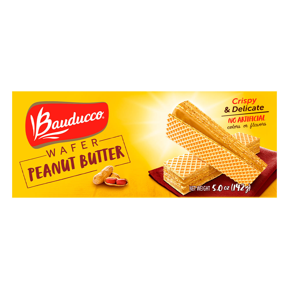 Enjoy a tasty treat when you choose these Bauducco Foods Peanut Butter Wafers. With 3 delicious creamy layers, these wafers pair well with coffee, milk and more.