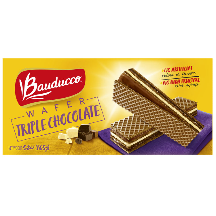 Enjoy a delicious snack anytime with these Bauducco Foods Triple Chocolate Wafers. With 3 delicious layers, these wafer cookies pair well with your favorite beverage.