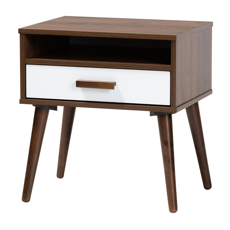 Baxton Studio 2-Tone End Table, 21-5/16inH x 19-3/4inW x 15-5/8inD, White/Walnut
