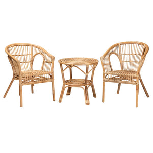 Baxton Studio Alleta Rattan 3-Piece Living Room Set, Natural Brown