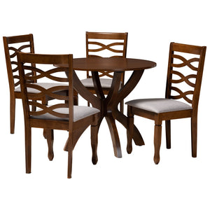 Baxton Studio Aspen Dining Set, 29-15/16inH x 35-7/16inW x 35-7/16inD, Gray/Walnut