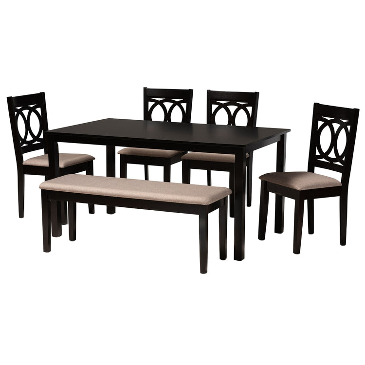 Baxton Studio Bennett Dining Set, 29-3/16inH x 59-1/16inW x 37-7/16inD, Sand/Dark Brown
