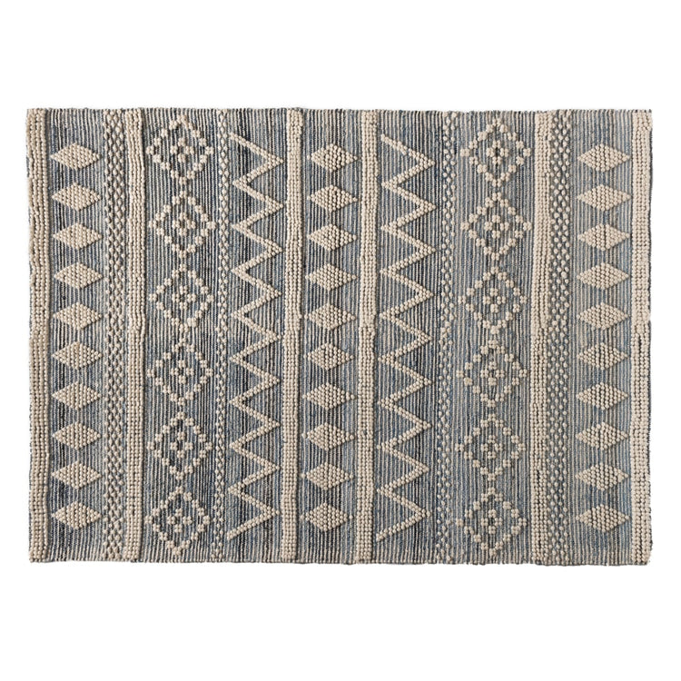 Baxton Studio Callum Handwoven Wool Blend Area Rug, 5-1/4ft x 7-1/2ft, Ivory/Blue