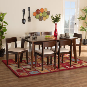Baxton Studio Camilla 7-Piece Dining Set, 29-15/16inH x 59-1/8inW x 35-7/16inD, Cream/Dark Brown