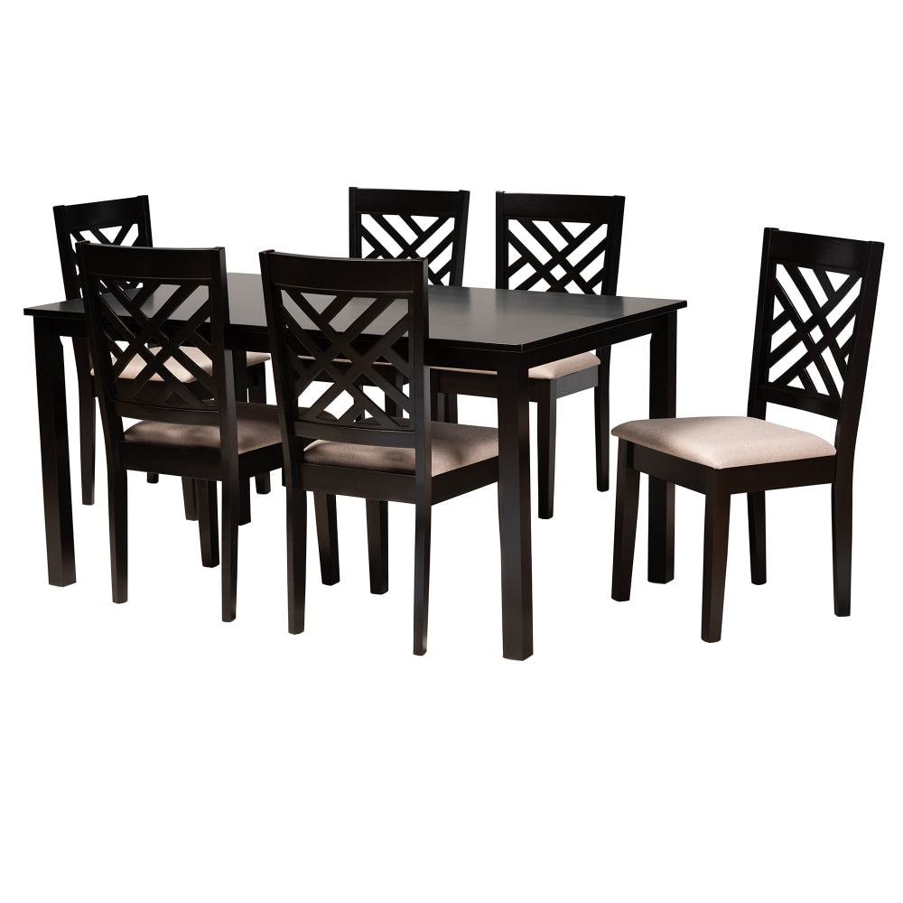 Baxton Studio Caron Dining Set, 29-3/16inH x 59-1/16inW x 35-7/16inD, Sand Brown/Espresso