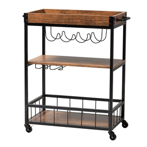 Baxton Studio Cerne Mobile Bar Cart With Wine Bottle Rack, 35-7/16in x 31-1/2in, Golden Oak/Black