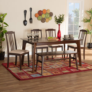 Update your space with the Baxton Studio Clarissa 6-Piece Dining Set. Each piece is made from rubberwood and MDF for long-lasting strength. Chairs are foam-padded for comfort.