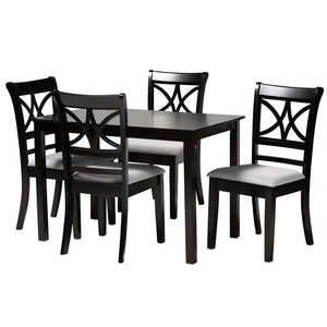 Baxton Studio Clarke 5-Piece Dining Set, 29-1/8inH x 43-5/16inW x 27-9/16inD, Gray/Espresso