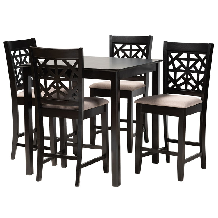 Baxton Studio Devon 5-Piece Pub Set, 36inH x 35-7/16inW x 35-7/16inD, Sand/Espresso