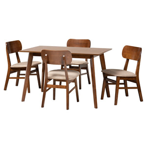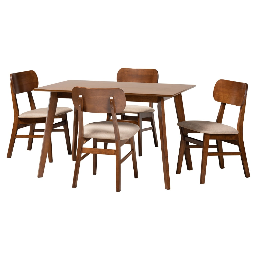 Baxton Studio Euclid 5-Piece Dining Set, Sand/Walnut Brown