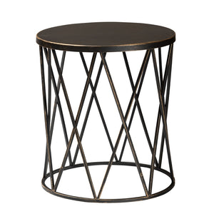 Enjoy a modern industrial touch with the Baxton Studio Finnick End Table. The end table features weathered accents and a circular surface to add to the look. The solid metal construction is built to last for years.