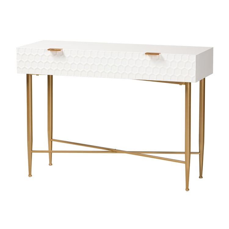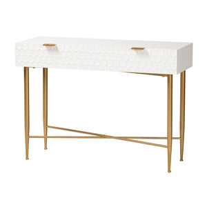 Baxton Studio Galia 1-Drawer Console Table, 29-15/16inH x 41-3/4inW x 15inD, White/Gold