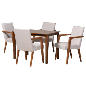 Baxton Studio Glenda 5-Piece Dining Set, Grayish Beige/Walnut