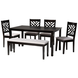 Baxton Studio Gustavo Dining Set, 29-3/16inH x 59-1/16inW x 35-7/16inD, Gray/Dark Brown