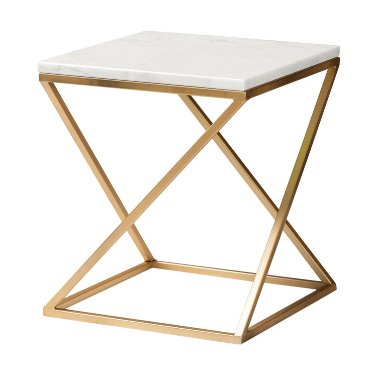 Baxton Studio Hadley End Table With Marble Tabletop, 16-1/4inH x 13-13/16inW x 13-13/16inD, Gold