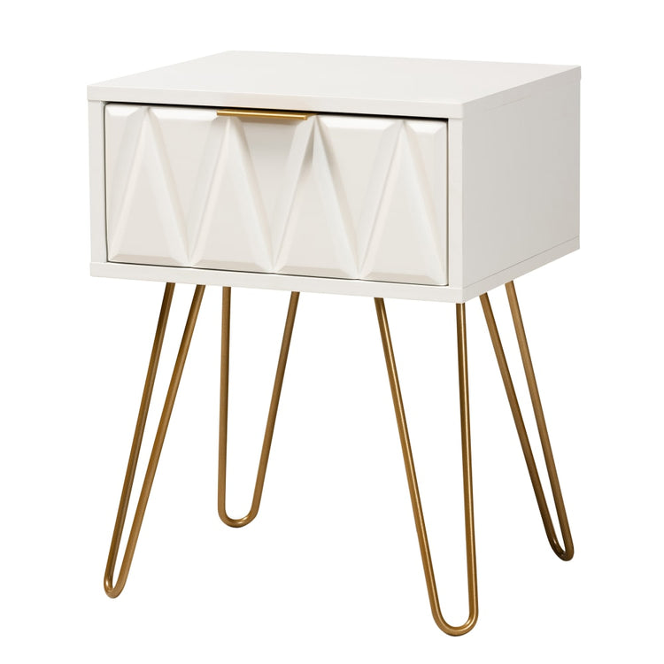 Baxton Studio Holbrook 1-Drawer End Table, 21-3/4inH x 16-1/2inW x 13-7/16inD, White/Gold