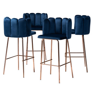 Baxton Studio Kaelin Bar Stools, Rose Gold/Navy Blue, Set Of 4 Stools