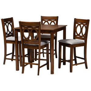 Baxton Studio Lenoir Pub Set, 36inH x 35-7/16inW x 35-7/16inD, Gray/Walnut