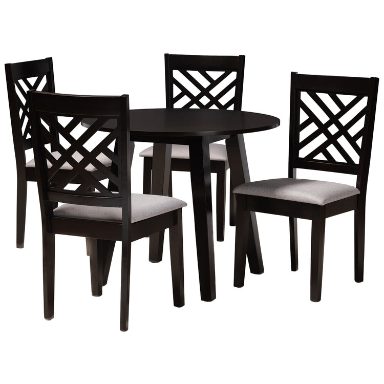 Baxton Studio Lilly Dining Set, 29-15/16inH x 35-7/16inW x 35-7/16inD, Gray/Dark Brown