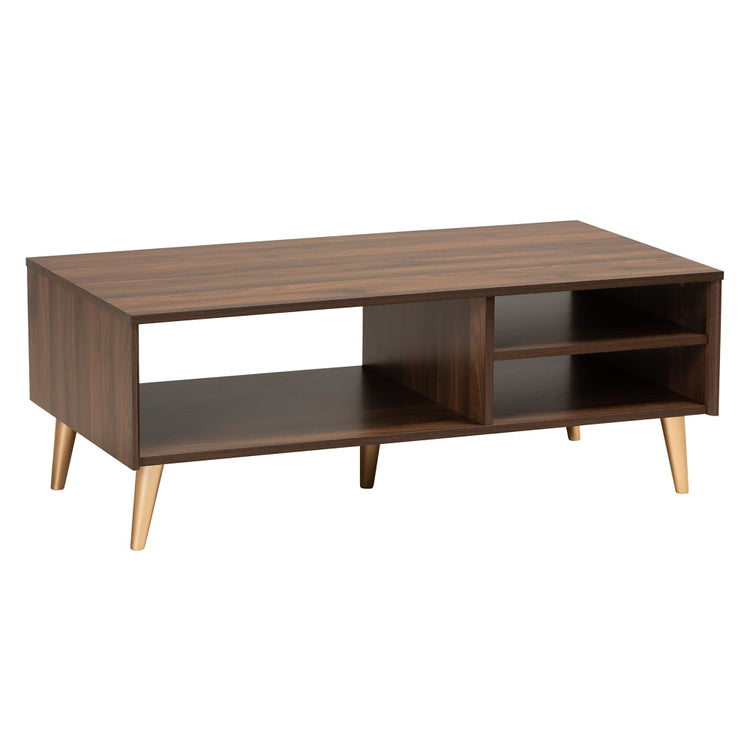 Baxton Studio Mid-Century Modern Coffee Table, 15-3/4inH x 41-5/16inW x 21-3/4inD, Walnut/Gold