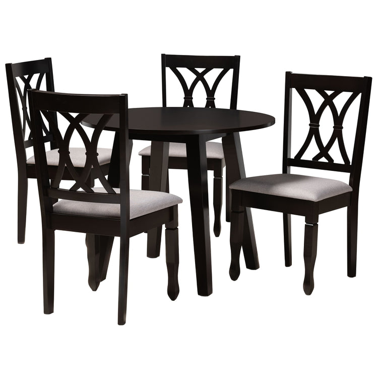 Baxton Studio Millie 5-Piece Dining Set, 29-15/16inH x 35-7/16inW x 35-7/16inD, Gray/Dark Brown