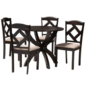 Baxton Studio Quinlan Dining Set, 29-15/16inH x 35-7/16inW x 35-7/16inD, Sand/Dark Brown
