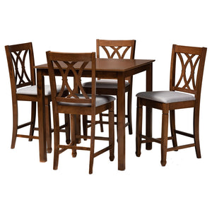 Baxton Studio Reneau Pub Set, 36inH x 35-7/16inW x 35-7/16inD, Gray/Walnut