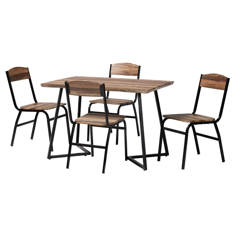 Baxton Studio Roana Wood And Metal 5-Piece Dining Set, Walnut Brown/Black