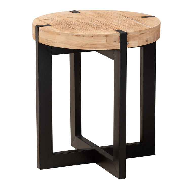 Baxton Studio Rustic And Industrial End Table, 15-3/4in x 13-13/16in, Natural Brown/Black