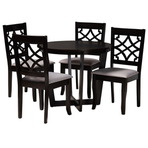 Baxton Studio Tricia Dining Set, 29-15/16inH x 35-7/16inW x 35-7/16inD, Gray/Dark Brown