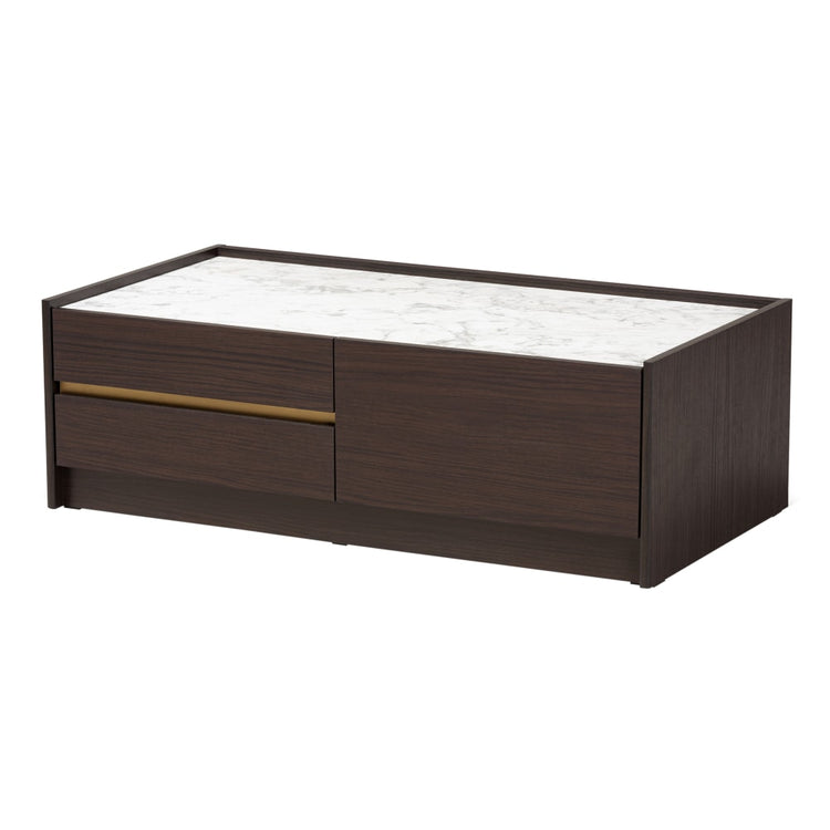 Enhance your living room space with a Baxton Studio Walker Coffee Table. Dual compartments are hidden behind stylish doors to organize smaller items. The durable wood, faux marble and polymer construction offers lasting durability.