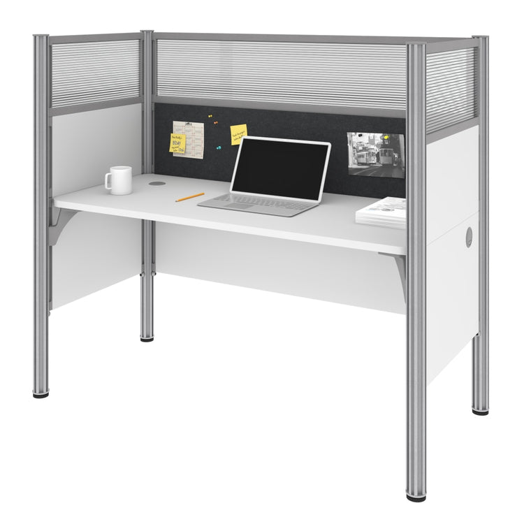 Bestar Pro-Biz 63inW Single Office Cubicle With Tack Board And High Privacy Panels, White/Gray