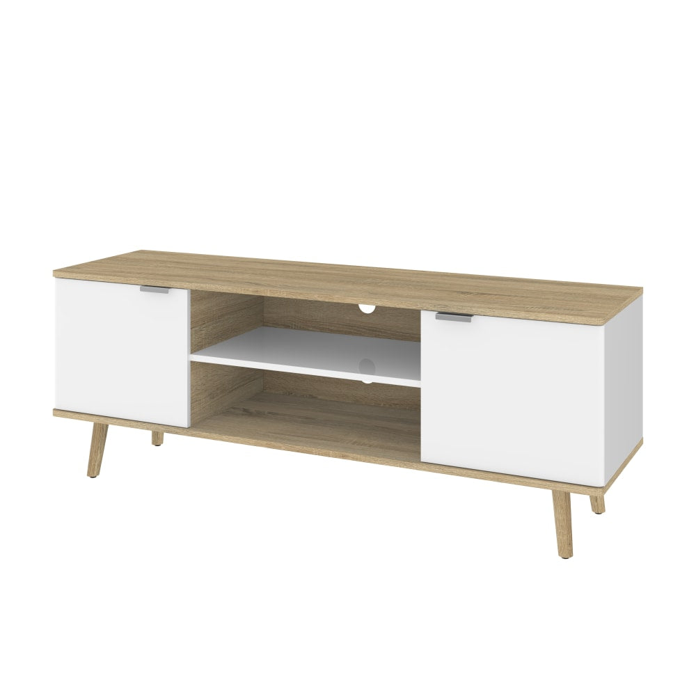 Bestar Procyon TV Stand For 55in TVs, 20-1/8inH x 55-1/8inW x 15-13/16inD, Modern Oak/UV White
