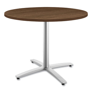 The round work surface brings everyone closer to their work. Scratch-, spill- and stain-resistant laminate stands up to heavy use. Easily attach a base using pre-drilled holes. Thick work surface provides a sturdy foundation for work. Durable edge-band provides a smooth, comfortable edge.