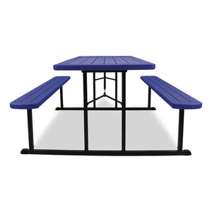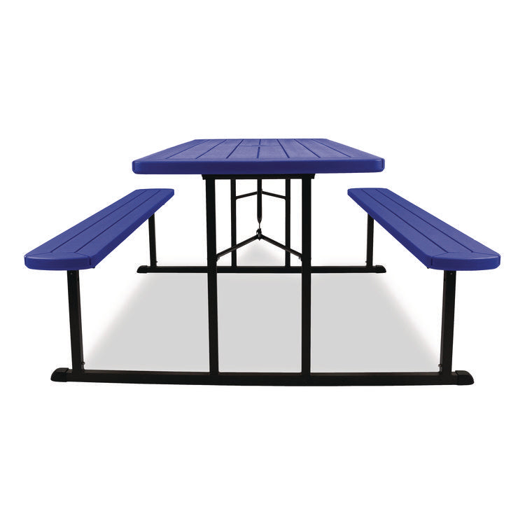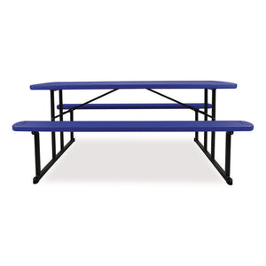 Blow Molded Folding Picnic Table, Rectangular, 57w x 72d x 29.5h, Blue Top, Black Base/Legs