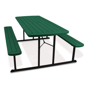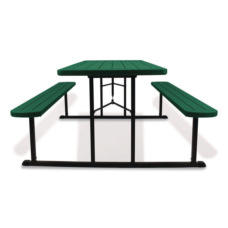 Blow Molded Folding Picnic Table, Rectangular, 57w x 72d x 29.5h, Green Top, Black Base/Legs