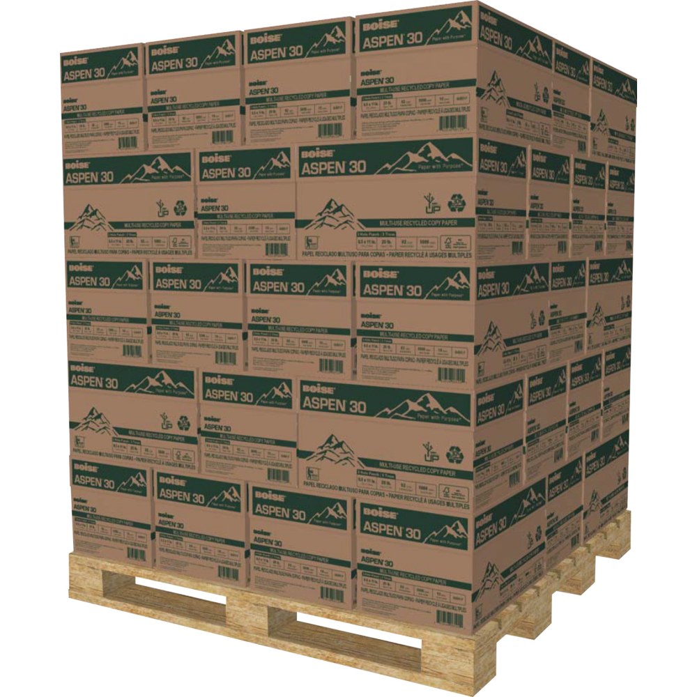 Boise ASPEN 3-Hole Punched Copy Paper, White, Letter (8.5in x 11in), 200000 Sheets Per Pallet, 20 Lb, 92 Brightness, 30% Recycled, Case Of 10 Reams