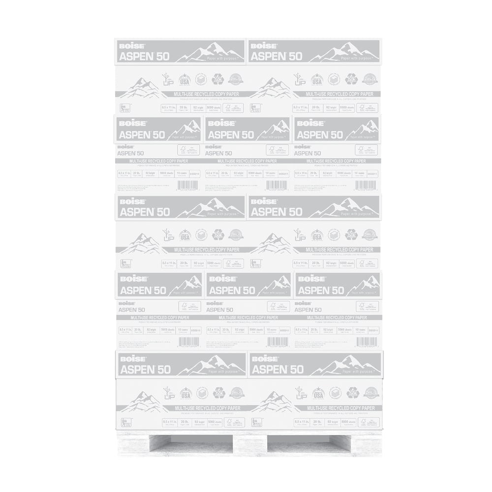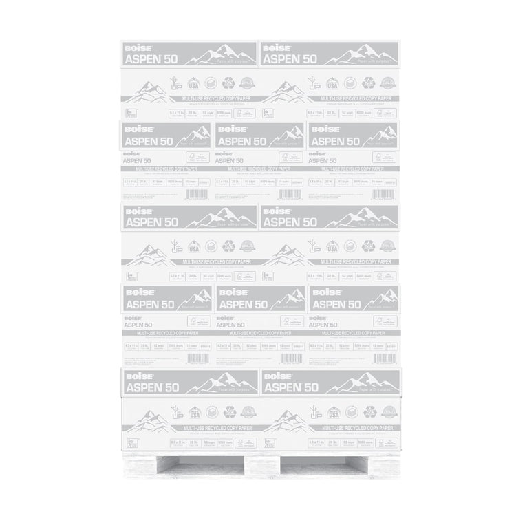 Boise ASPEN 3-Hole Punched Copy Paper, White, Letter (8.5in x 11in), 200000 Sheets Per Pallet, 20 Lb, 92 Brightness, 50% Recycled, FSC Certified, Case Of 10 Reams