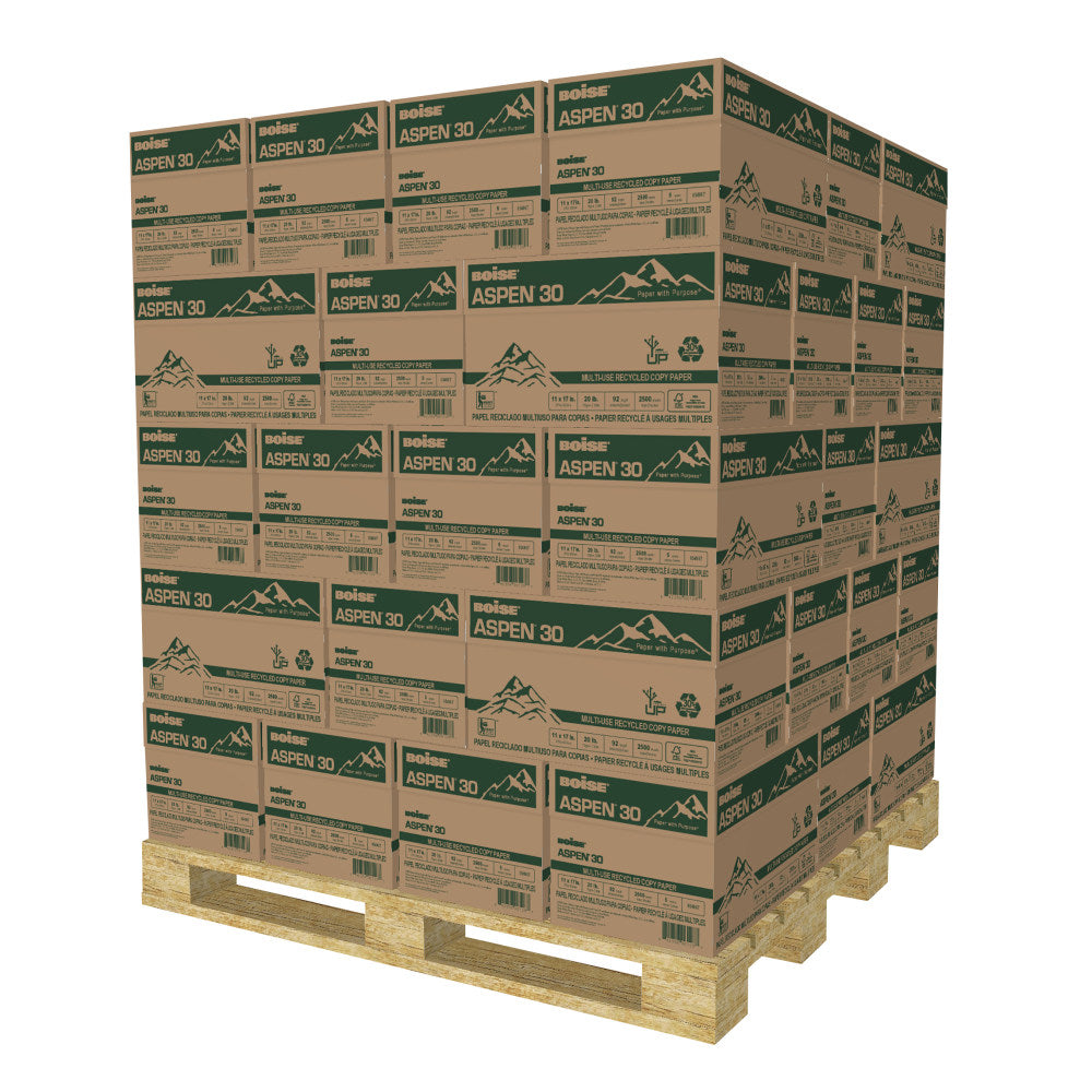 Boise ASPEN 30 Multi-Use Printer & Copy Paper, White, Ledger (11in x 17in), 100000 Sheets Per Pallet, 20 Lb, 92 Brightness, 30% Recycled, FSC Certified, Case Of 5 Reams