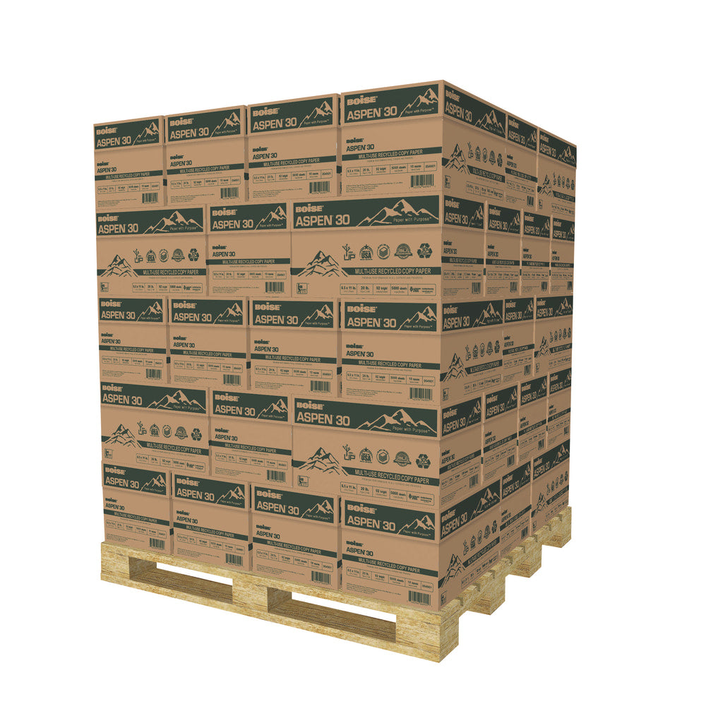 Boise ASPEN 30 Multi-Use Printer & Copy Paper, White, Letter (8.5in x 11in), 200000 Sheets Per Pallet, 20 Lb, 92 Brightness, 30% Recycled, FSC Certified, Case Of 10 Reams