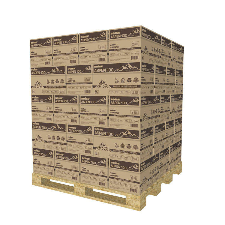 Boise ASPEN Multi-Use Printer & Copy Paper, White, Letter (8.5in x 11in), 200000 Sheets Per Pallet, 20 Lb, 92 Brightness, 100% Recycled, FSC Certified, Case Of 10 Reams