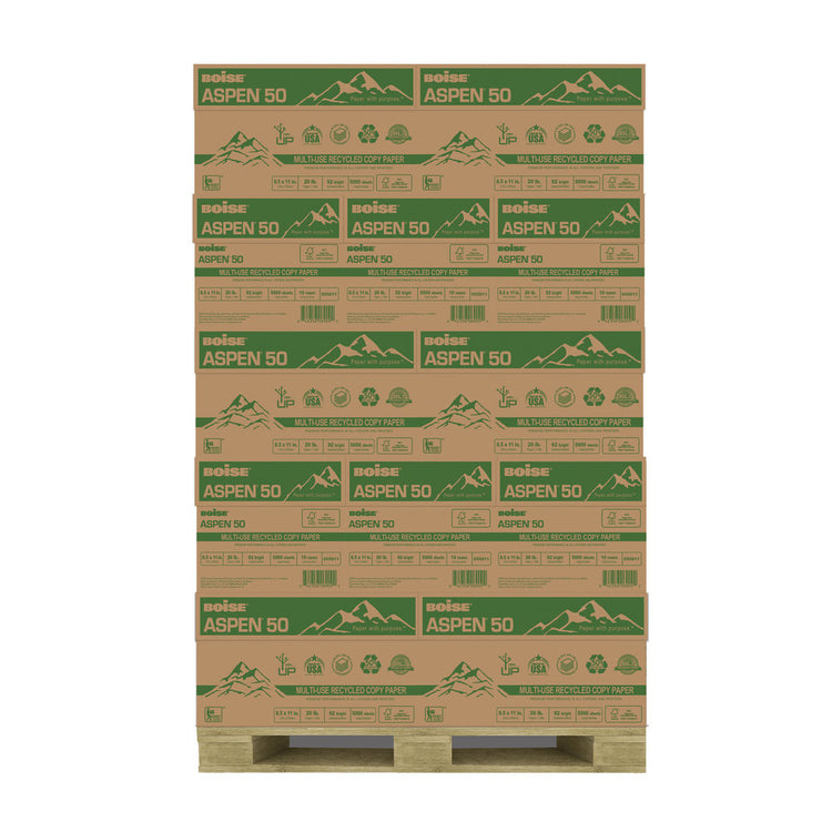 Boise ASPEN Multi-Use Printer & Copy Paper, White, Letter (8.5in x 11in), 200000 Sheets Per Pallet, 20 Lb, 92 Brightness, 50% Recycled, FSC Certified, Case Of 10 Reams
