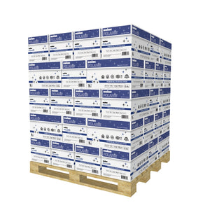 - Pallet of 40 cases of white paper includes 10 reams per case and 500 sheets per ream.